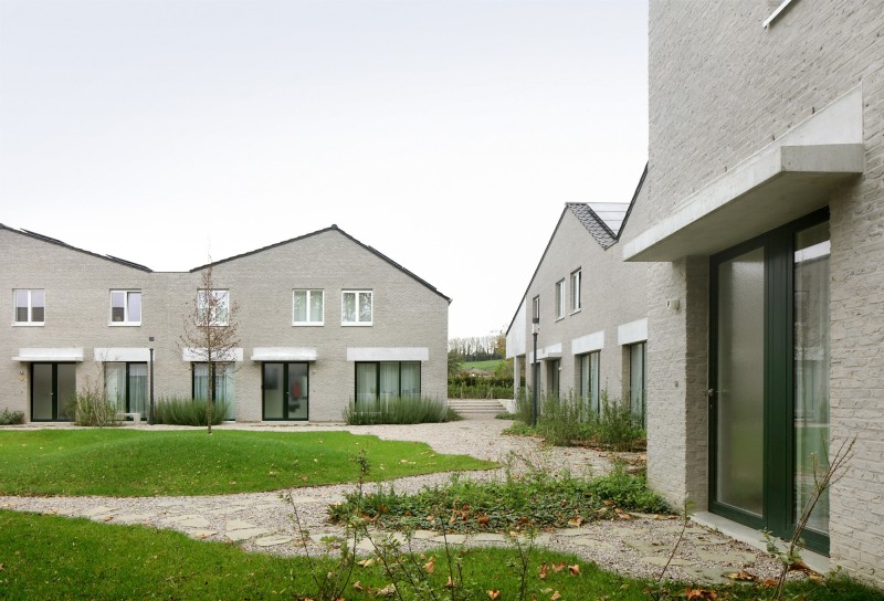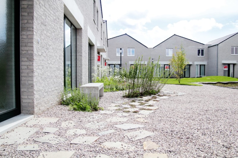 Op een voormalig bedrijventerrein werden 9 woningen met privétuin en een gemeenschappelijke binnentuin gerealiseerd.